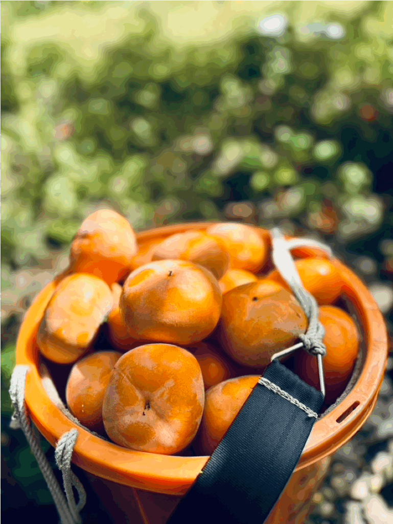 On the farm, the beginning of fall sets in like a new rhythm. All summer we climbed up into tree after tree, snipping off excess kaki that fell like a light rain. Now, with our baskets slung over our shoulders, gradually filling up, we move slower, cresting and bottoming out like waves. If it sounds like heavy work, that’s because it is, but today made me appreciate the heaviness of fall.